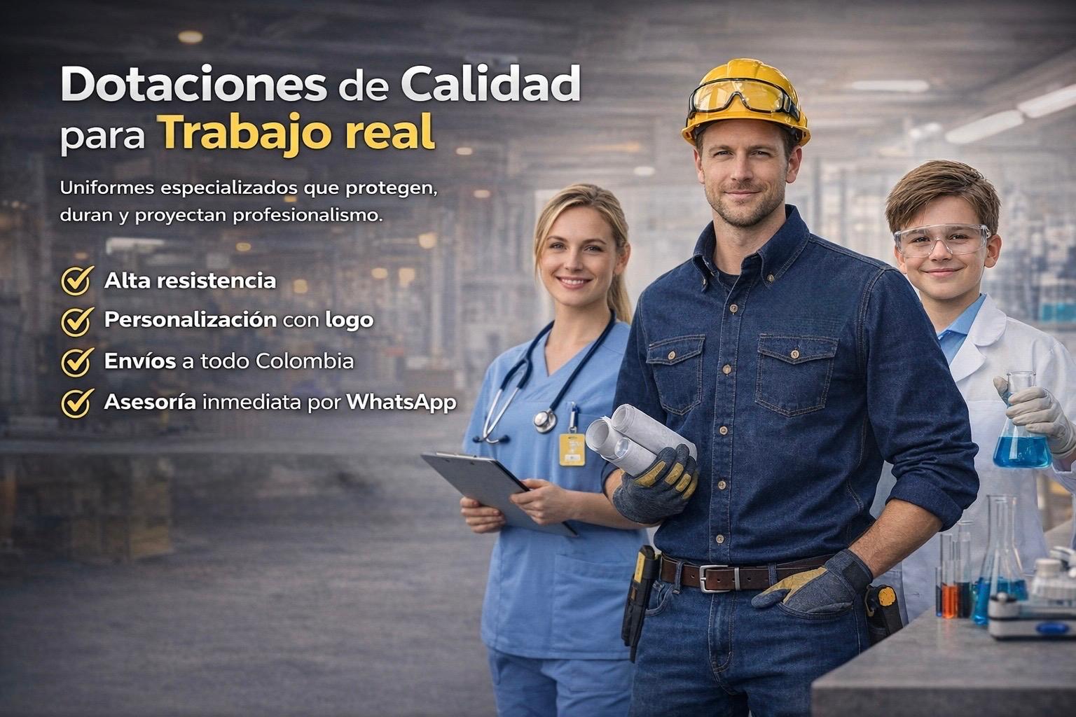 Dotación industrial, médica y educativa con calidad, resistencia y presentación profesional. Equipamos tu equipo para el trabajo real.